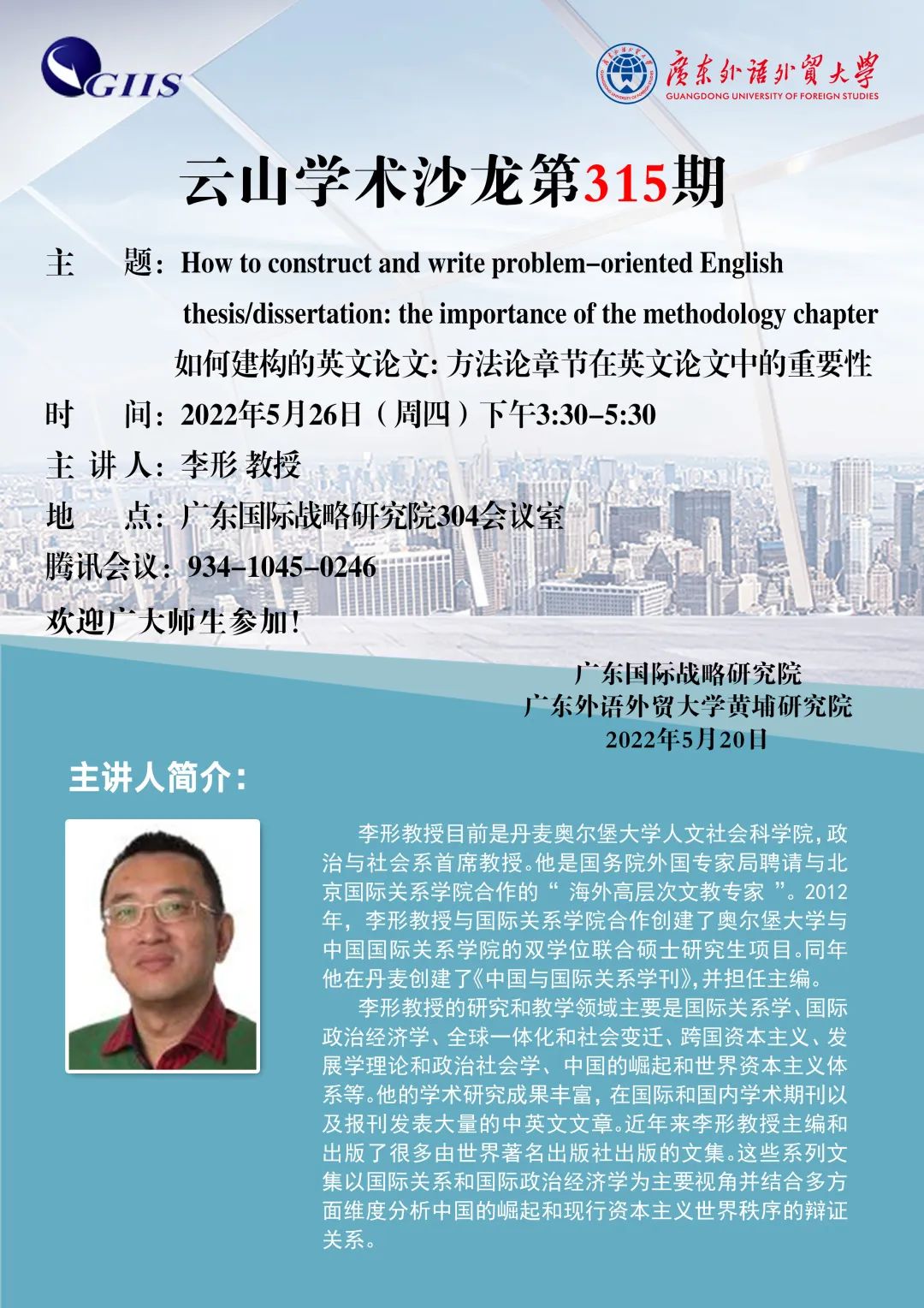 云山學(xué)術(shù)沙龍第315期預(yù)告