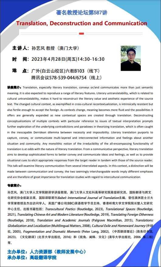 著名教授論壇第587講: Translation, Deconstruction and Communication
