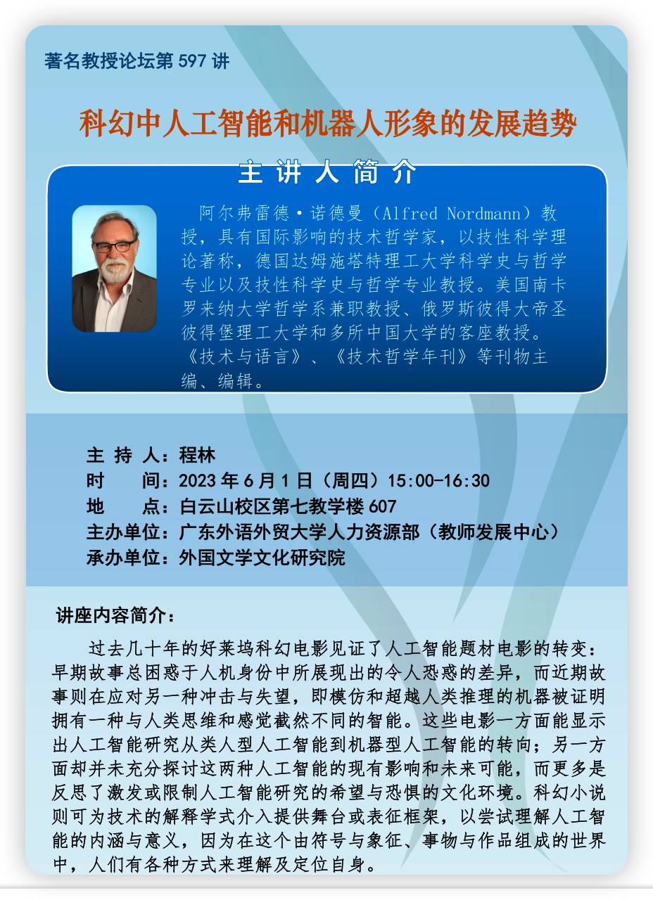 著名教授論壇第597講:科幻中人工智能和機器人形象的發展趨勢