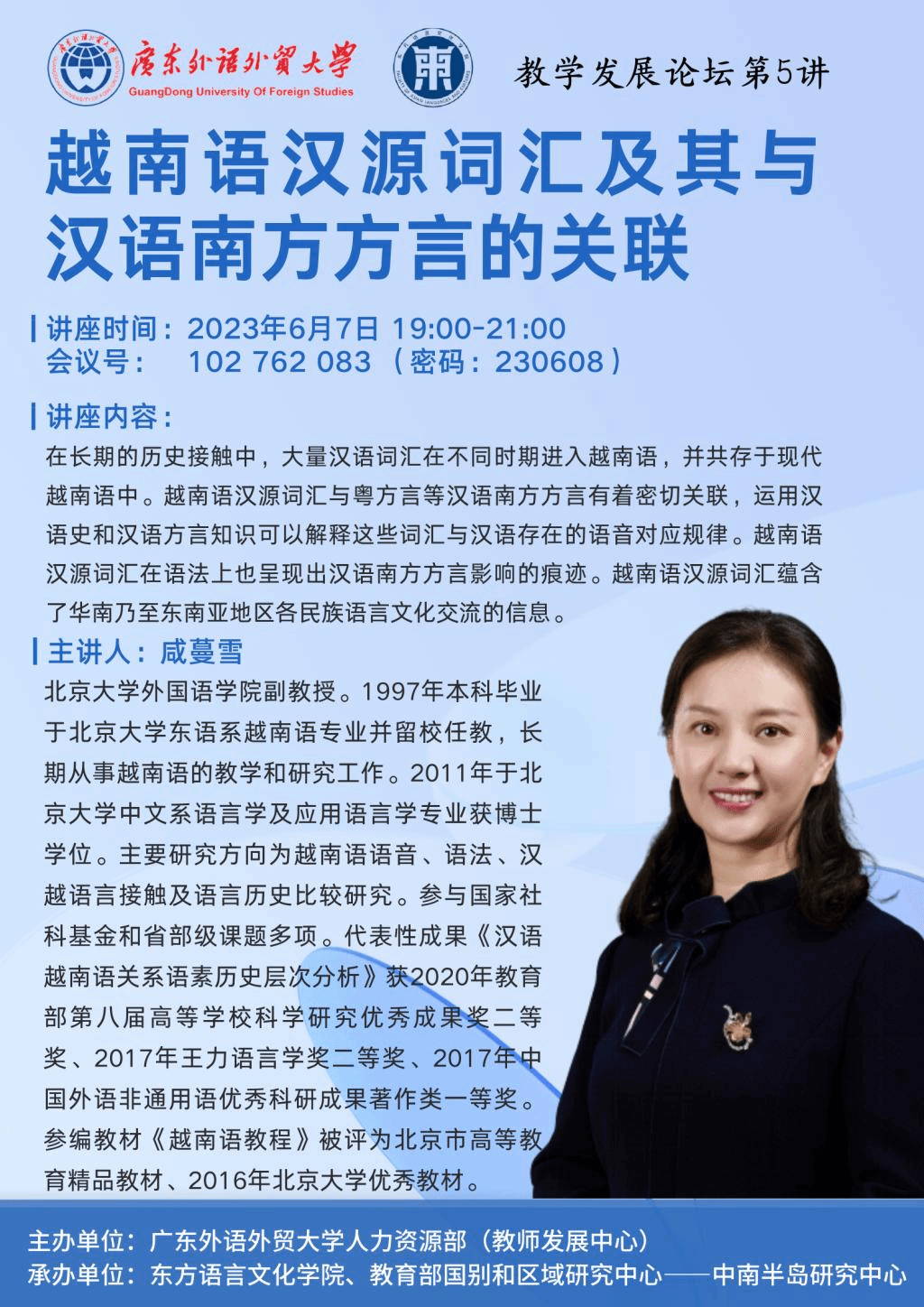 教學發展論壇第5講:越南語漢源詞匯及其與漢語南方方言的關聯