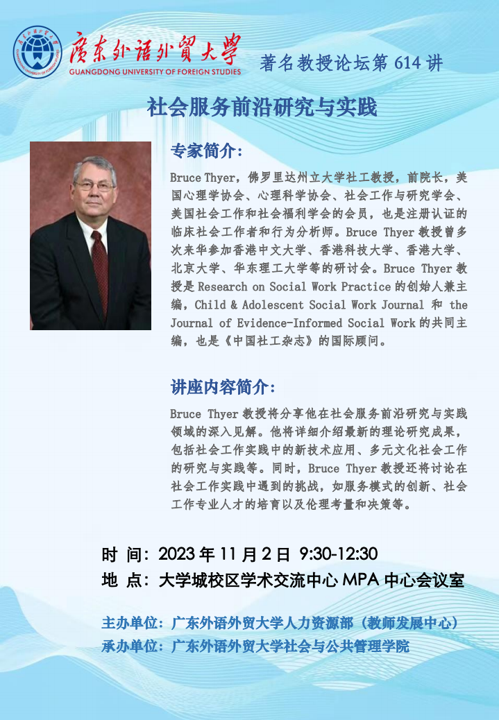 著名教授論壇第614講:社會(huì)服務(wù)前沿研究與實(shí)踐