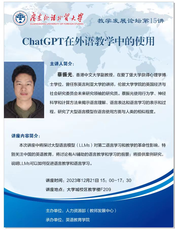 教學(xué)發(fā)展論壇 第15講:ChatGPT在外語教學(xué)中的使用