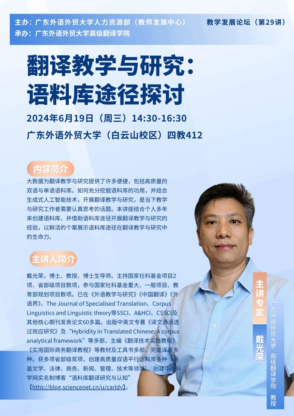 教學發展論壇第29講:翻譯教學與研究:語料庫途徑探討