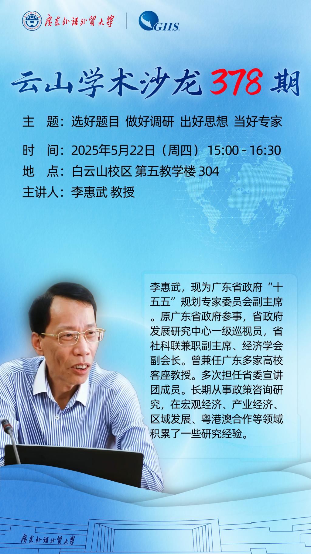 云山學術沙龍第378期:選好題目 做好調研 出好思想 當好專家