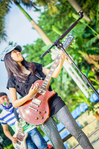 鄭佳婉,商英學院2010級,是北校霏陽吉他協會前任會長。在2013年6月,她創辦了第一屆廣外搖滾音樂節。音樂節當天,許多畢業的師兄師姐頂著烈日捧場觀看。廣外的傳奇樂隊Stranger,把氣氛推向了高潮。觀眾跟著樂隊一起合唱,一起笑,一起pogo,一起流眼淚。另外一支擅長重型音樂的樂隊——血蝴蝶,也給觀眾留下了深刻的印象。之后一些畢業生和佳婉聊天說:“原來這就是搖滾,原來要搖要跳才是搖滾。謝謝這次搖滾節,給了我畢業前最好最歡樂的兒童節禮物?!?/p>