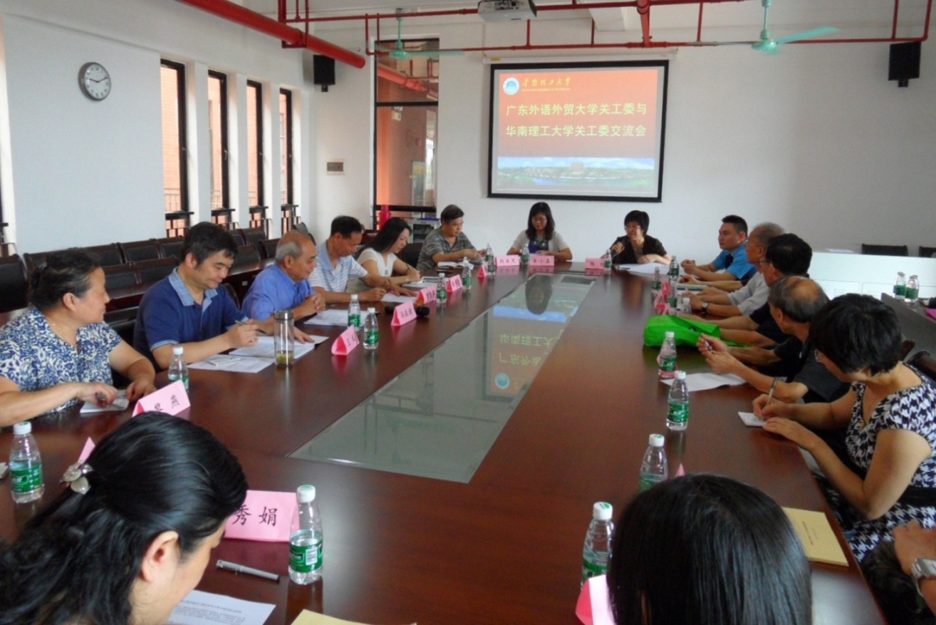 本網訊 6月16日,我校關心下一代工作委員會主任馮益謙、秘書長謝秀蘭及英文學院、經貿學院、商英學院、管理學院等四個二級關工委主任、委員14人一行赴華南理工大學關工委(以下簡稱“華工關工委”)交流關工委工作。華工關工委常務副主任曾惠典、常務副秘書長楊紅及其他關工委委員熱情接待了我校一行人。此次交流著重探討關工委常態化建設和二級關工委建設。