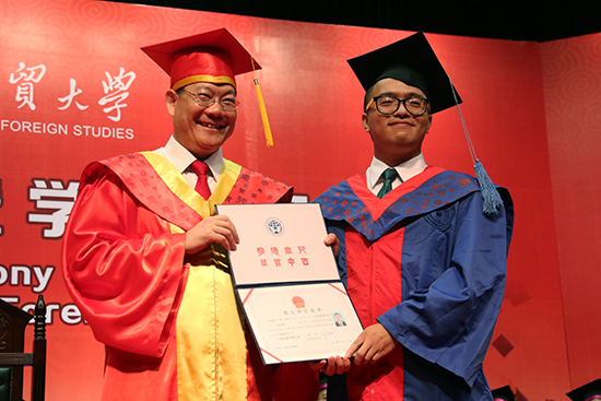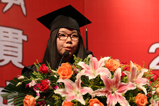 近期被全國媒體廣泛報道的援疆志愿者、2011屆畢業生馮卓怡,作為校友代表出席畢業典禮。她的一番話語為畢業生們注進了一股新鮮的活力:“我時時想起我是廣外的人,怎么能給母校丟臉,面對困難還是打起精神來奮斗?!彼粲跬瑢W們做一個對國家有用的人,“如果我們有光明,那么中國就不會黑暗?!睂τ诋厴I生的前途和人生走向,她說:“人生的目的在于從現實到理想的奮斗中體驗生命的意義,但行好事,莫問前程,我們要在20歲的年紀做自己認為有意義的事。”