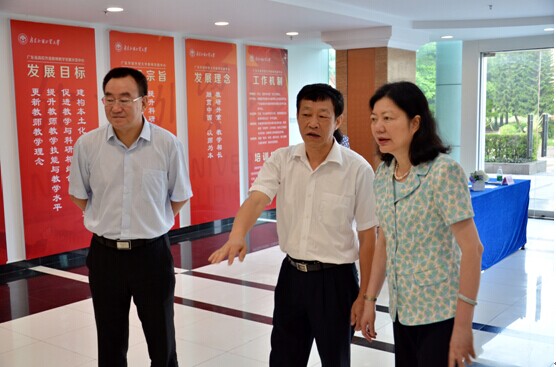 本網訊 6月23日,2014年廣東省“珠江學者”答辯會議在我校北校區教師發展中心拉開序幕,會議歷時一周。廣東省教育廳巡視員羅遠芳、副廳長李學明,師資管理處處長傅湘龍等出席會議,我校校長仲偉合、副校長許國彬、顧也力、石佑啟、何傳添到場迎接并陪同省廳領導參觀我校教師發展中心。
