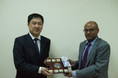 隋廣軍向亞的斯亞貝巴大學Tassew Woldehanna贈送紀念品
