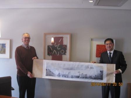隋廣軍向金山大學校長Rob Moore贈送紀念品