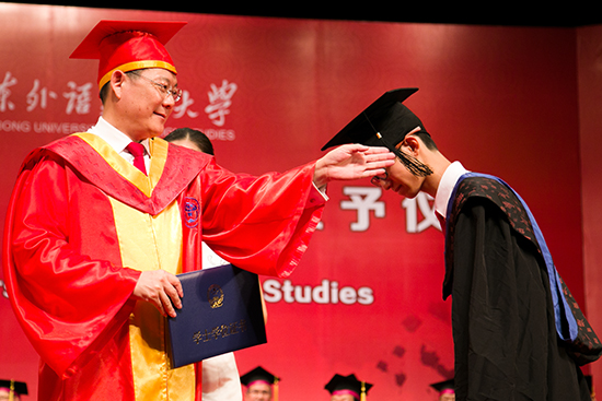 低頭接受校長撥穗,寓意自己已學有所成,可以展翅高飛