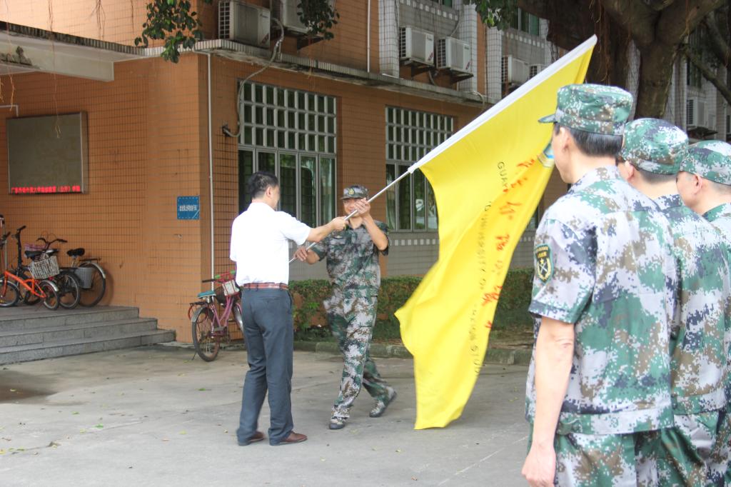隋廣軍為軍訓隊伍授旗