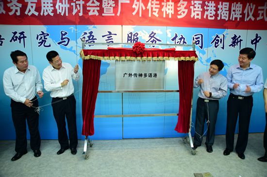 本網訊 9月12日上午,我校與傳神(中國)網絡科技有限公司聯合建立的“廣外傳神多語港”揭牌儀式暨語言服務發展研討會在北校區六教B108會議廳舉行。廣外傳神多語港將致力于發展成為領先的即時語言服務支撐平臺、高端語言人才培養基地以及重大科研項目培育基地。傳神(中國)網絡科技有限公司總裁何恩培、常務副總經理傅強,我校校長仲偉合,副校長顧也力、何傳添及學校相關單位負責人出席了儀式。儀式由顧也力主持。