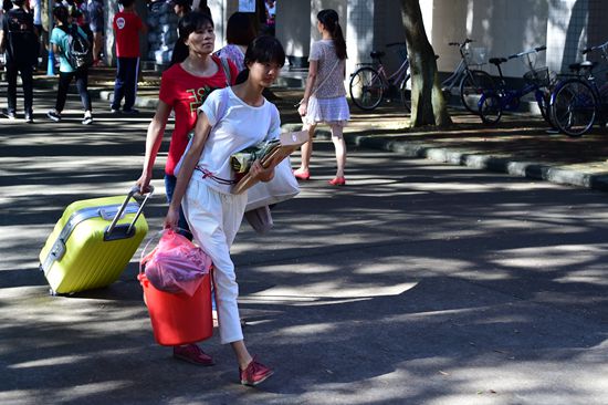 但也有同學選擇獨自到學校報到,鍛煉自己獨立生活的能力。信息學院的朱同學與同伴從韶關(guān)坐火車來廣州,再到學校報到,全程都沒有家長的陪伴,中學已有住宿經(jīng)驗的她對此已是駕輕就熟。