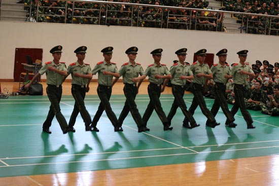 本網(wǎng)訊 9月16日,2014級本科生軍訓(xùn)動員大會分別在南北校體育館舉行,2014級新生軍訓(xùn)正式啟動。今年軍訓(xùn)為期約半個月,至本月29日結(jié)束,屆時將舉行軍訓(xùn)匯演。