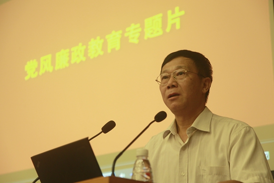 教育活動上,校黨委副書記、紀委書記陳建平受校黨委書記隋廣軍的委托發表講話。陳建平要求各單位負責人要認真落實黨風廉政建設責任制,加強制度建設和落實,抓好黨紀政紀法紀的宣傳教育,做好監督檢查工作,種好自己的“責任田”,管好班子、帶好隊伍。提醒全校黨員干部要認真算清貪腐的“政治賬、經濟賬、親情帳、健康賬、自由賬”,進一步強化底線意識、紀律意識,切實做到自重、自省、自警、自勵。