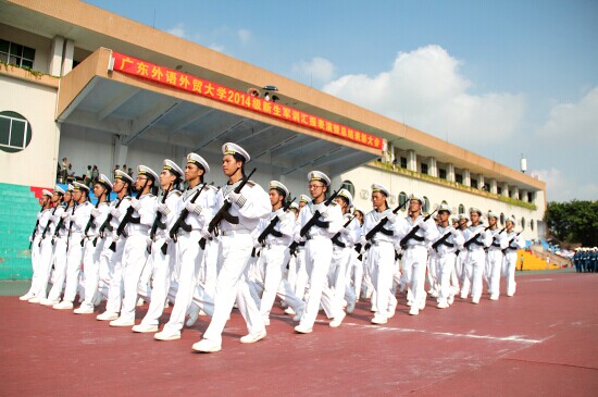 出席北校區(qū)軍訓(xùn)匯演的嘉賓還有:廣東省軍區(qū)動(dòng)訓(xùn)處主任代紅兵、白云區(qū)人民武裝部部長胡建生、黃石街武裝部副科長李連生、武警廣東省總隊(duì)第一支隊(duì)副支隊(duì)長田永國,我校黨委副書記陳建平,副校長方凡泉、顧也力、陳林漢等。出席南校區(qū)軍訓(xùn)匯演的嘉賓還有:廣東省國防教育辦公室副主任謝冰,廣東省教育廳體衛(wèi)藝處副調(diào)研員黎盟,廣外軍訓(xùn)旅旅長、武警廣東省總隊(duì)第一支隊(duì)后勤部副長劉躍峰,我校副校長石佑啟、陽愛民,廣外軍訓(xùn)旅參謀長、武警廣東省總隊(duì)第一支隊(duì)中尉黃華等。