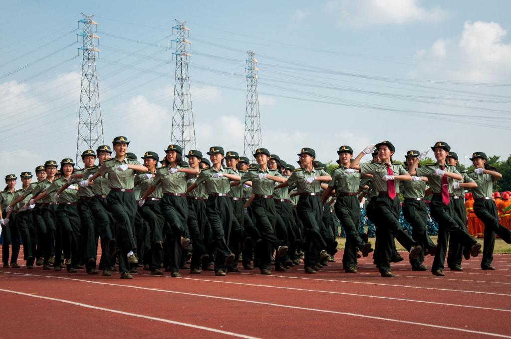 在軍事技能表演中,由210名女生組成的匕首操方陣讓人眼前一亮,她們手持戰(zhàn)斗匕首,展示我軍實(shí)戰(zhàn)中的戰(zhàn)斗技巧;擒敵方陣的戰(zhàn)士們個(gè)個(gè)眼神凌厲,充滿斗志,完美詮釋了精銳之師的含義。