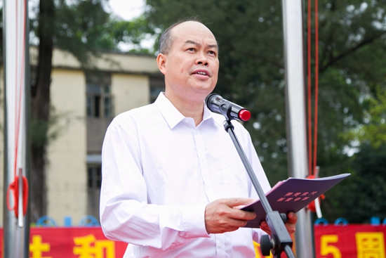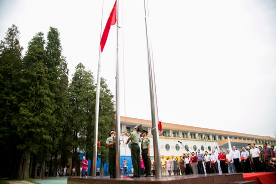 伴隨著洪亮的國歌聲,五星紅旗冉冉升起?!吧暇盘鞌堅?、下五洋捉鱉”。盧景輝在致辭中提到,中國夢正在實現過程中,65年的歷程就是一部探索并實現現代化進程的壯麗詩篇。萬里山河,江山錦繡,今天的美好生活來之不易。當代青年建功立業的舞臺空前廣闊,夢想成真的前景空前光明。