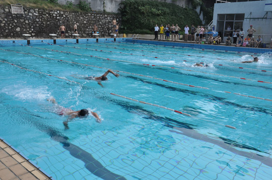本網(wǎng)訊 為推動全民健身計劃,促進我校教職工游泳運動的開展,由校工會主辦,體育部承辦的2014年廣東外語外貿(mào)大學(xué)教職工游泳比賽于10月16日下午在北校區(qū)游泳池舉行。經(jīng)過激烈追逐,東語學(xué)院工會代表隊獲得團體總分第一名,商英學(xué)院工會代表隊獲得團體總分第二名,科研三工會代表隊獲得團體總分第三名。