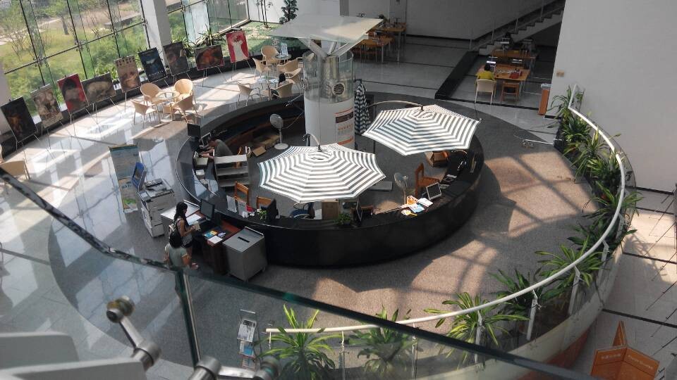 而圖書館內設計更是盡顯人性化和國際化。秉持相同的“以實用導向”的建館理念,圖書館為學生們提供閱覽座位4648個,計算機檢索機位540個,信息節點2700個。開架借閱書庫總面積達1.6萬平方米,擁有508座的2個多功能報告廳,多間小型會議室和讀者個人研修室。全館實行藏、借、閱、研一體化的開放式管理模式,設有文獻建設部、流通服務部、閱覽服務部等多個服務區。圖書館管理方專門還設置了兩層自習室給學生,并開放二十四小時自習室,這在全國各大圖書館都是極少見到的。一直以來,圖書館不斷完善自身,努力開辟更多可用空間給讀者自由閱讀,北校圖書館四樓的“信息共享空間”就是一個好例子。作為一個實體功能區,“信息共享空間”不僅提供視頻觀看,還有個人研討區和群體討論區等供師生進行信息交流。