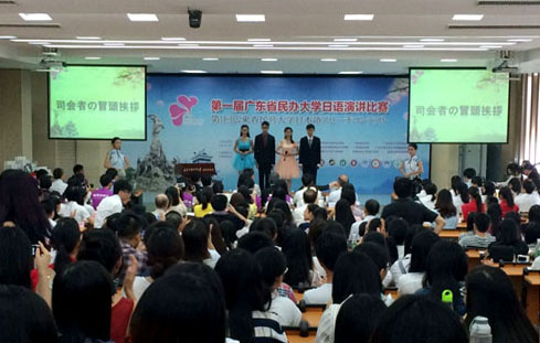 我校南國商學(xué)院校長徐真華在致辭中說到,本次日語演講比賽旨在搭建起省內(nèi)民辦大學(xué)日語專業(yè)溝通的橋梁,構(gòu)筑展示民辦大學(xué)日語專業(yè)學(xué)生風(fēng)采的平臺,同時提高廣東省日語專業(yè)教學(xué)水平。他衷心期待各高校以本次比賽為契機,共謀發(fā)展,為各高校的協(xié)同創(chuàng)新和共同提高貢獻力量。