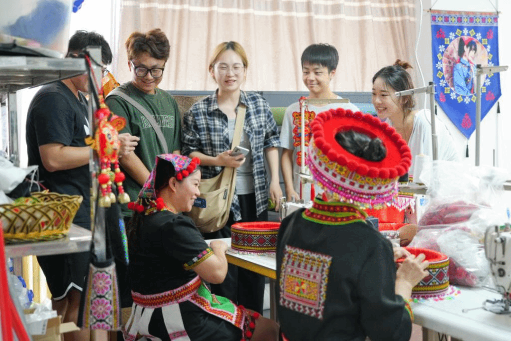 廣東外語外貿大學“瑤籃”實踐團奔赴韶關市乳源瑤族自治縣開展廣東青年大學生“百千萬工程”突擊隊行動,以瑤族刺繡為核心,通過“線下走訪+線上設計”的方式,深入瑤鄉大地,創新設計瑤繡文創產品、建成瑤繡紋樣IP庫、開展瑤繡體驗和培訓課程,直接帶動200余名,間接帶動1000余名瑤鄉繡娘增收致富,以非遺瑤繡助力鄉村振興!