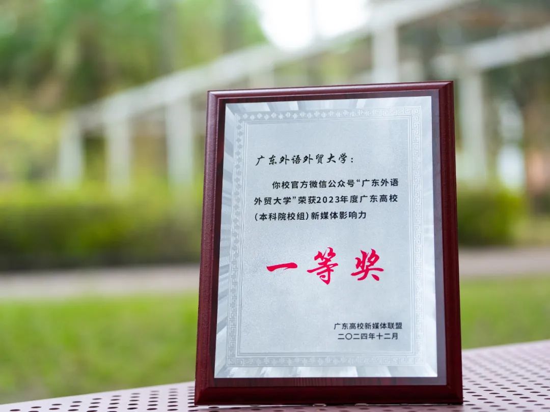 本網(wǎng)訊在12月17日舉辦的2024年廣東高校新媒體聯(lián)盟年會上,廣東外語外貿(mào)大學(xué)官方微信公眾號榮獲2023年廣東高校新媒體影響力一等獎。新媒體傳播影響力位居全國前列、廣東第一梯隊。