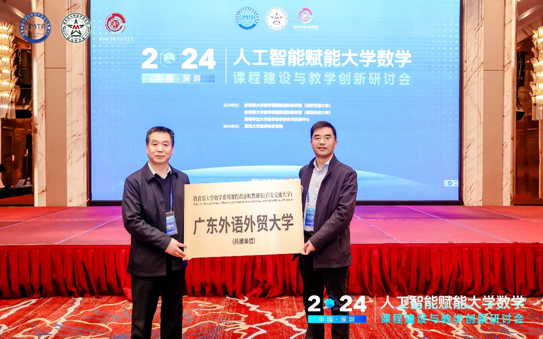 開幕式上,教育部大學(xué)數(shù)學(xué)課程群虛擬教研室(西安交通大學(xué))負(fù)責(zé)人李繼成教授為新增共建單位授牌,我校數(shù)學(xué)與統(tǒng)計學(xué)院院長王軍威教授代表學(xué)校接受授牌,并向與會人員介紹了學(xué)院概況和我校大學(xué)數(shù)學(xué)特色課程體系。此次授牌標(biāo)志著我校正式成為教育部大學(xué)數(shù)學(xué)課程群虛擬教研室共建單位,這也是學(xué)校在推動大學(xué)數(shù)學(xué)課程教學(xué)創(chuàng)新方面取得的重要成果。