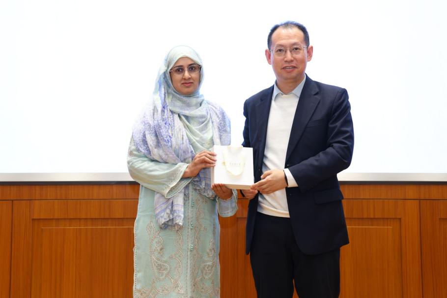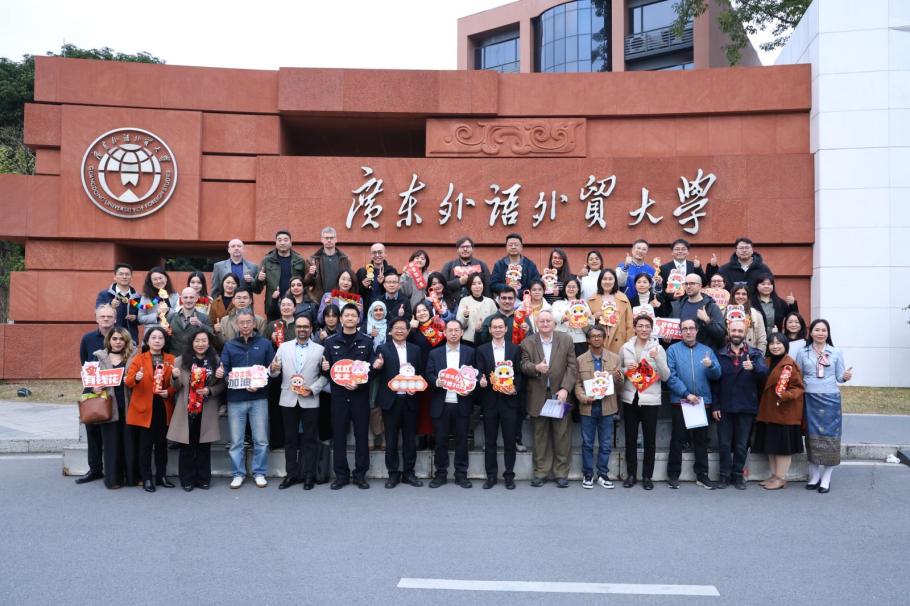 申明浩指出,過去一年是學校國際化發展成果豐碩的一年,學校持續加強頂層設計,通過實施“廣東外語外貿大學國際交流合作‘PRIME’計劃”,推動教育國際化工作提質增效,成功實施了多個交流與合作項目,豐富了學生海外學習經歷,也為師生提供了更加多樣的交流機會。申明浩特別強調,學校致力于國際化師資隊伍建設上的投入,包括設立各類崗位吸引高端國際人才,以及加大對引才引智項目的支持,為構建國際化精英師資團隊奠定了堅實基礎。會上,申明浩為即將離職的外教代表頒發紀念品。
