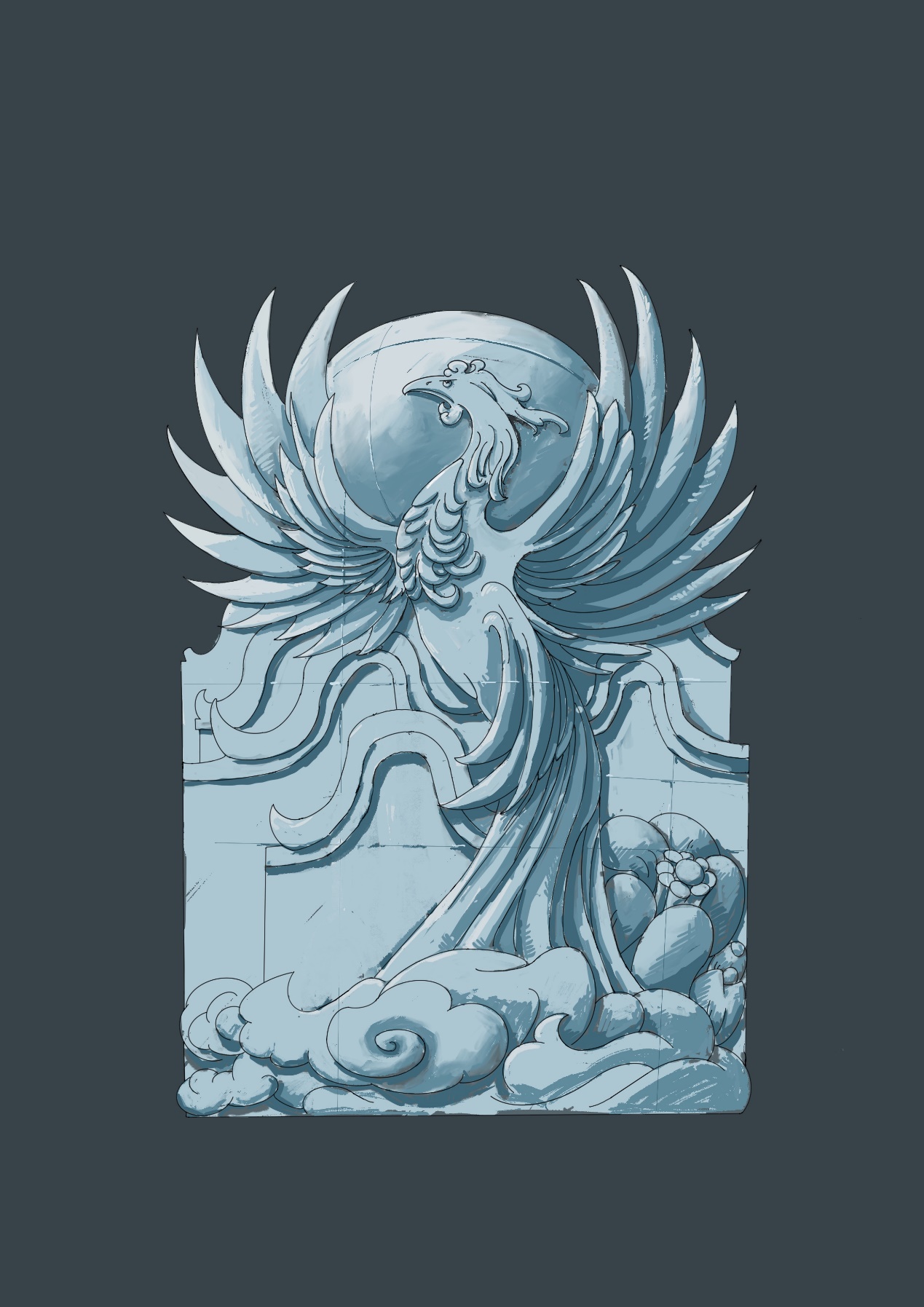 從報名參賽到敲定作品,再到反復的修改與模擬,作為冰雕經驗相對欠缺的隊伍,成員們憑借滿腔熱情與堅定決心,在前期籌備階段付出了諸多努力。尤其在設計稿的創作過程中,為了使作品更具藝術性和可操作性,團隊經歷了無數次的修改和完善。一開始,團隊大膽構思讓鳳凰踩在一個石頭花球之上。可很快,現實就給他們出了難題——復雜精細的鏤雕工藝遠超預期,技術實現難度極大。但團隊成員們并未氣餒,他們迅速一起冷靜研討,通過簡化復雜的結構和細節,讓鳳凰爪子隱于飄逸尾羽之后,最終還保留了文化精髓。此創新巧思不僅成功突破技術瓶頸,更令鳳凰形象鮮活而靈動。