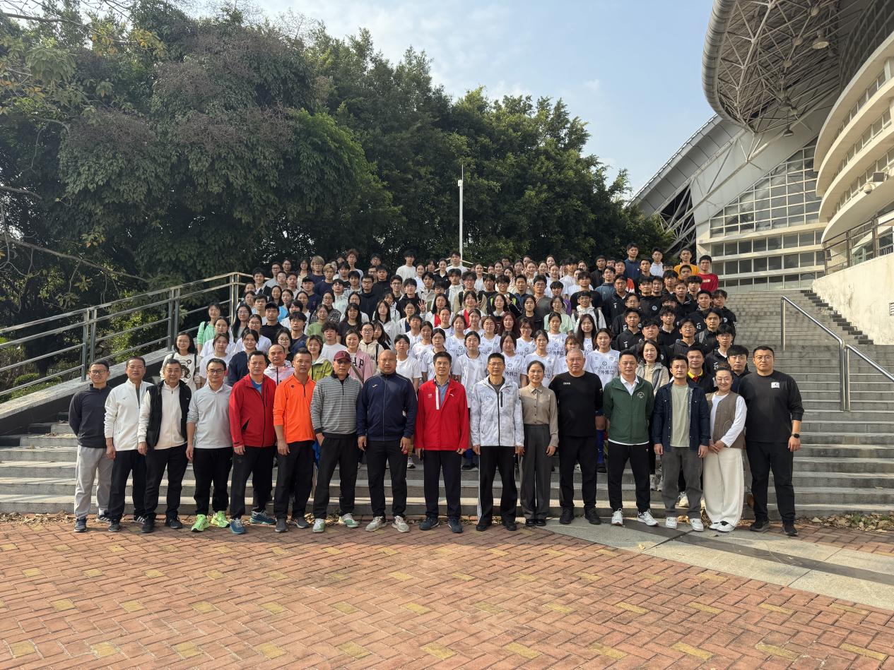 本網訊 2月20日下午,為更好的備戰2025年5月至6月舉行的廣東省第十二屆大學生運動會,體育部在大學城體育館階梯教室舉行第十二屆廣東省大學生運動會寒假集訓動員會。體育部黨總支書記鐘羅軍、主任李旭武、副主任黃德沂以及全體大運會運動隊教練員、運動員參加本次會議。會議由體育部副主任黃超群主持。