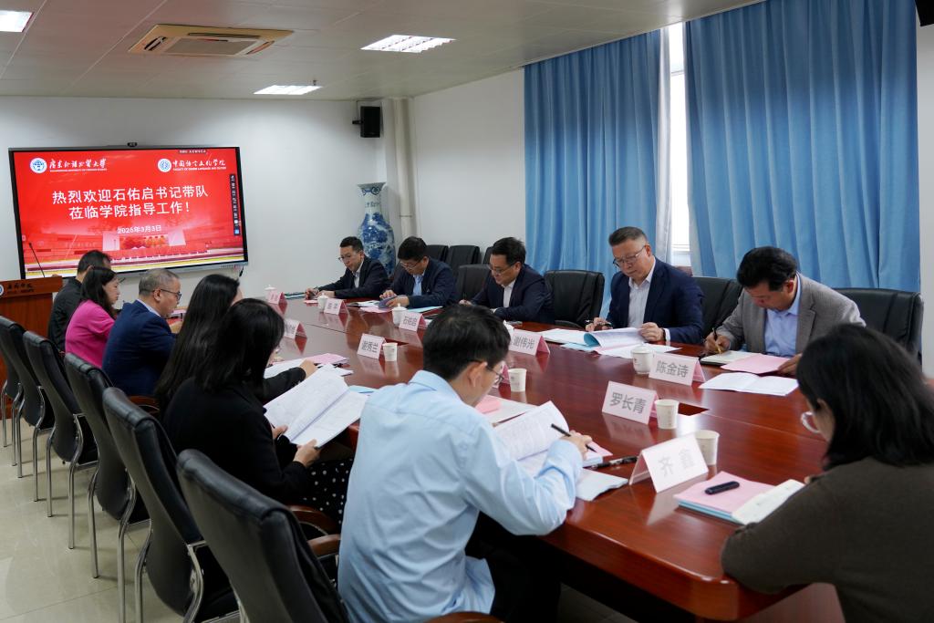 閆相斌一行走訪了大學城校區的經貿學院和教育學院,他強調,要以飽滿的精神狀態抓好新學期各項工作謀劃鋪排和推進落實,以優異成績迎接學校建校60周年。閆相斌指出,要重點抓好“十五五”規劃編制工作,為學院事業發展強化頂層設計。要深化學科交叉融合,構筑學科建設新生態,激活學科發展“內生動力”。要系統提升復合型創新型國際化人才培養質量,持續完善人才培養體系,加快數字化轉型改革。要創新人才工作體制機制,重點加強高水平領軍人才和青年教師隊伍建設,為學校高質量發展夯實人才基礎,共同書寫服務教育強省建設的廣外“新答卷”。