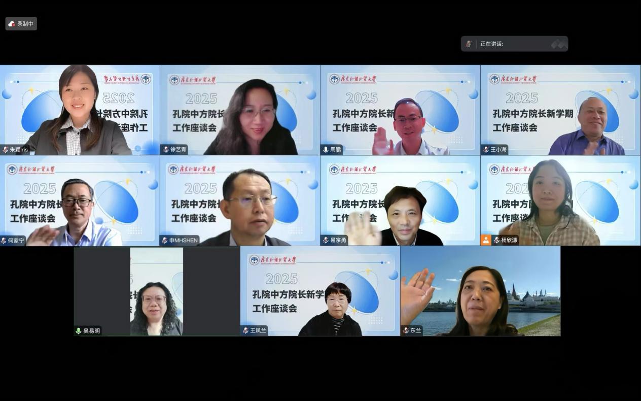 本網訊 3月20日晚,我校2025年孔院中方院長新學期工作座談會在線上召開。學校黨委常委、副校長申明浩出席此次會議并就新學期學校孔院工作作出部署,我校各孔院中方院長齊聚“云端”,總結成果、謀劃發展,為新學期孔院高質量發展錨定方向。座談會由我校孔子學院辦公室主任周鵬主持。
