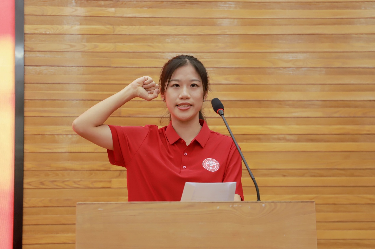 我校健美操隊教練員黎良發代表教練員宣誓,承諾將秉承科學訓練的原則,以飽滿的精神投入備戰,結合運動員實際制定個性化訓練方案,助力每一位隊員突破極限、提升競技水平。在即將到來的大運會比賽,將全力以赴、攻堅克難,力爭在賽場上創造佳績。
