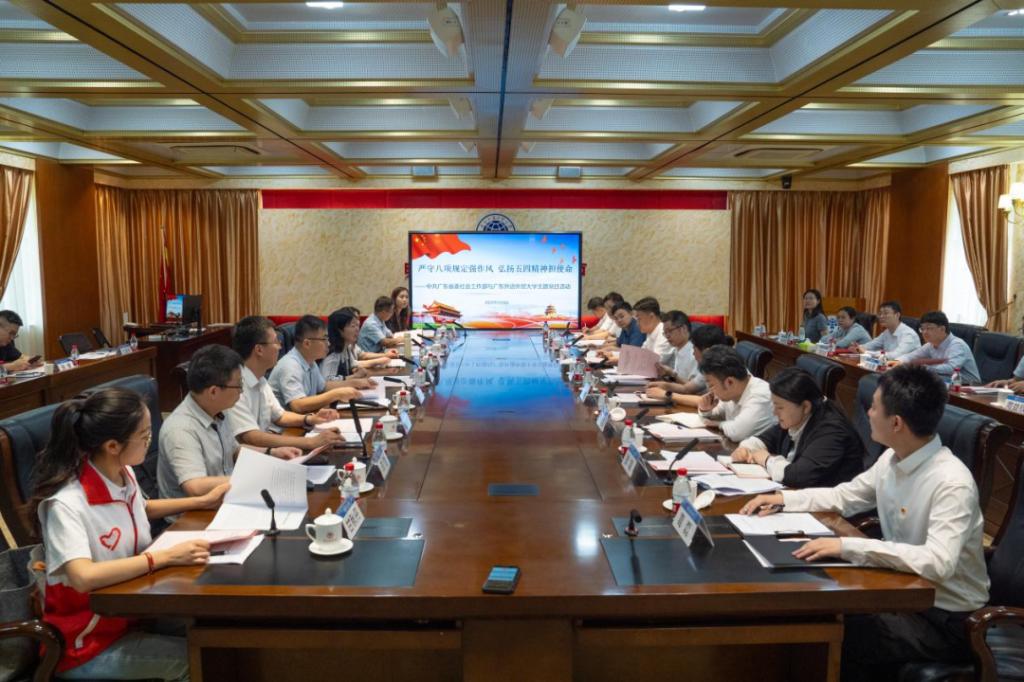 活動伊始,省委社會工作部青年理論學習小組一行來到校史館,詳細了解學校發展歷史、學科建設、人才培養、國際交流、志愿服務等方面情況。隨后深入廣東國際戰略研究院,認真聽取研究院在“一帶一路”、全球經濟治理、粵港澳大灣區建設和大國關系與區域治理等研究領域決策咨詢服務工作情況匯報。