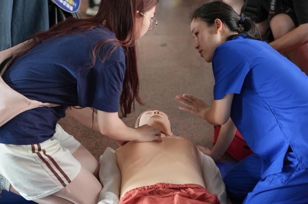 在專業人士的指導下,師生們可以試穿消防戰斗服、體驗醉駕VR眼鏡、模擬大型車輛內輪差區危害、體驗心肺復蘇術等互動項目,在近距離體驗中提升安全技能。特別設置的國安守護圈、國安轉轉樂、密盾神射手等互動游戲區,將嚴肅的安全知識轉化為趣味挑戰,激發了師生的參與熱情。