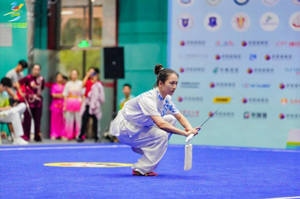 本網(wǎng)訊 5月15日至18日,2025年廣東省第十二屆大學(xué)生運動會武術(shù)套路比賽在暨南大學(xué)(石牌校區(qū))邵逸夫體育館舉行。本屆賽事由廣東省教育廳、廣東省體育局主辦,廣東省學(xué)生體育藝術(shù)聯(lián)合會協(xié)辦。本屆賽事設(shè)有拳術(shù)、器械、太極拳、太極器械類等多個項目,共有80余支高校代表隊參賽,競爭尤為激烈。