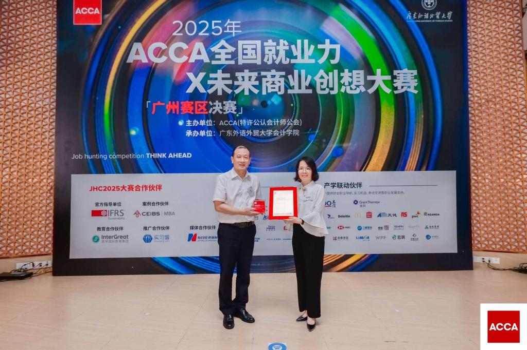 本網訊 由國際專業會計師組織ACCA(特許公認會計師公會)主辦、廣東外語外貿大學會計學院承辦的2025年第22屆ACCA全國就業力X未來商業創想大賽(簡稱JHC大賽)廣州賽區決賽于5月23日在廣東外語外貿大學圓滿落幕,同時該賽事也是會計學院學術文化節的重磅開幕活動。共有六支來自廈門、廣州、深圳的晉級區域決賽優秀高校團隊齊聚羊城,圍繞AI賦能型教育機構的商業案例分析展開激烈角逐,爭奪全國總決賽入場券,充分展示了新時代財會學子的專業實力與創新風采。