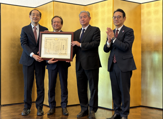 本網訊 近日,中華全國日語演講比賽獲日本外務省在外公館長表彰儀式在日本駐中國大使官邸舉行。中國教育國際交流協會副秘書長王魯新與合作主辦方日本經濟新聞社、中日學術交流中心的代表共同出席活動,日本駐華大使金杉憲治現場頒獎。比賽的評委專家、地區決賽承辦院校、贊助商及支持單位、往屆參賽選手等代表約50人參加活動。日語學院院長、教授楊曉輝作為承辦高校代表受邀出席并致辭。
