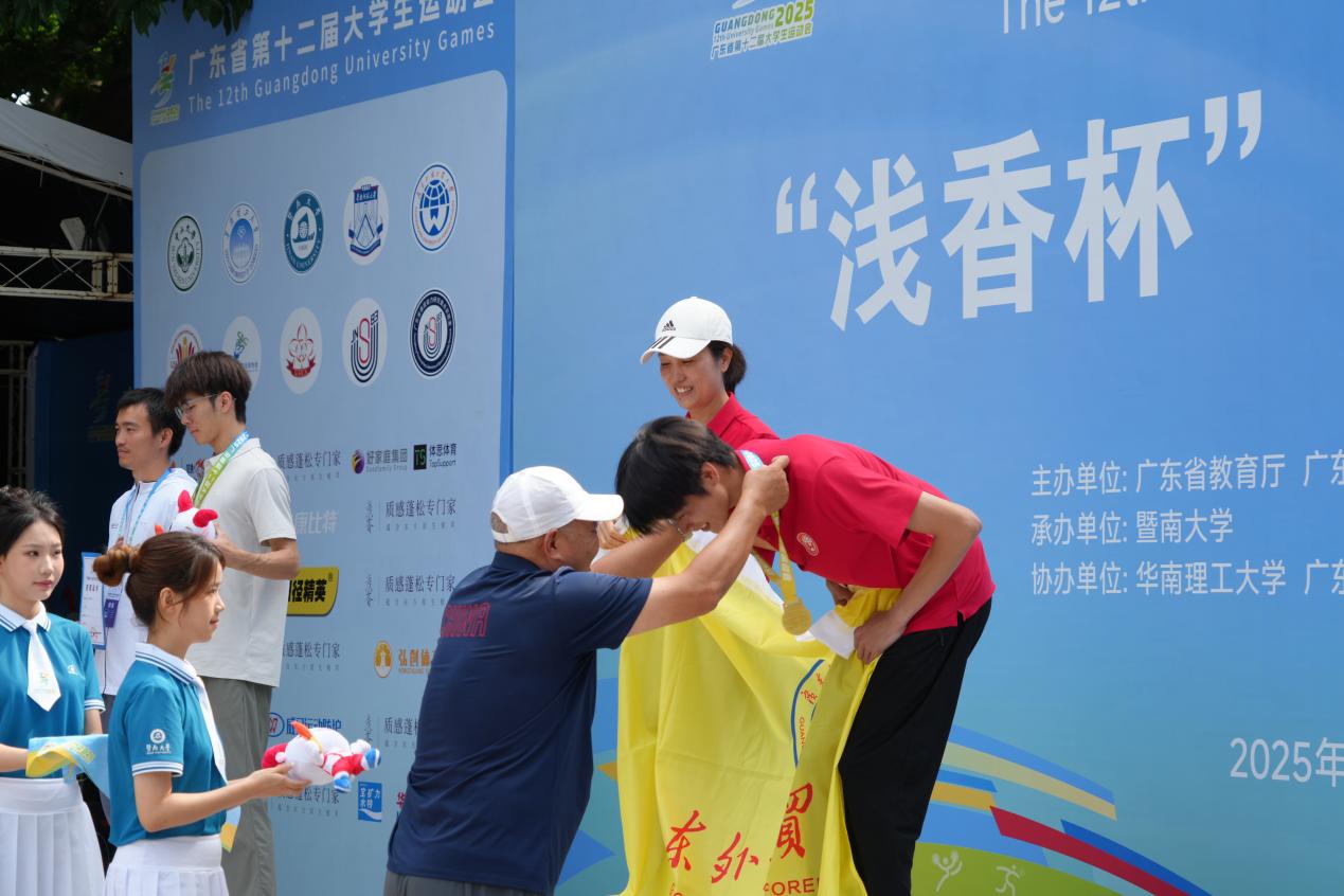 助跑、騰空、換腿、落地,沙塵騰起又落下。廣東省第十二屆大學生運動會“淺香杯”田徑比賽三級跳賽場上,電子顯示屏上的數字14.17米如平地驚雷,讓蔡汝軒得以戴著金牌站上三年間屢次擦身而過的領獎臺。