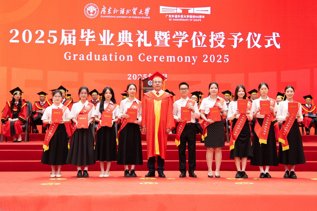 閆相斌希望同學們帶著甲子廣外的精神烙印,以“明德尚行”的品格立身,以“學貫中西”的本領立業,在強國建設、民族復興新征程中乘風破浪、闊步向前。最后,他誠摯邀請畢業生們在60周年校慶之際重返母校,與恩師同窗共敘當年情,和師弟師妹暢談未來夢。