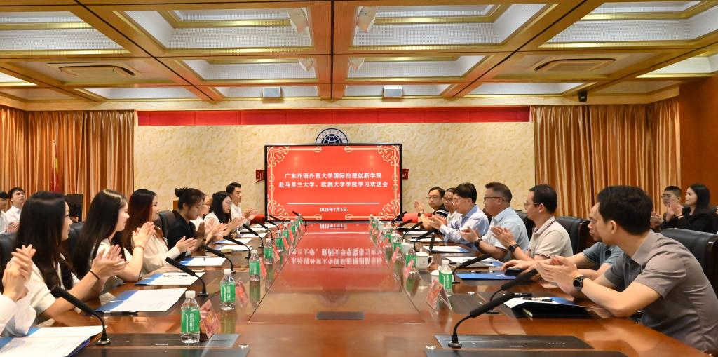 作為赴美和赴歐的學生代表,2023級李彬彬、2024級劉曉茵分享了他們的經歷與收獲,他們談到,國際治理創新學院的課程體系與實踐平臺,夯實了學子們的理論基礎和綜合能力、拓展了國際視野、堅定了理想信念、提升了自信和底氣。他們將牢記“明德尚行,學貫中西”校訓,以專業素養講好中國故事、以廣外胸懷促進中外文明互鑒。