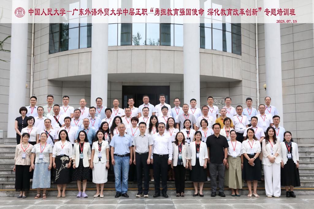 本網訊 為深入學習貫徹習近平總書記關于教育強國建設的重要論述,提升我校中層干部政治素養與改革攻堅能力,7月14日至19日,我校在中國人民大學舉辦中層正職“勇擔教育強國使命,深化教育改革創新”專題培訓班。校黨委副書記、校長閆相斌赴中國人民大學看望全體學員。校黨委常委、紀委書記、廣東省監委駐學校監察專員溫燕歡,中國人民大學歷史學院黨委書記呂學明、院長胡恒出席開班儀式。
