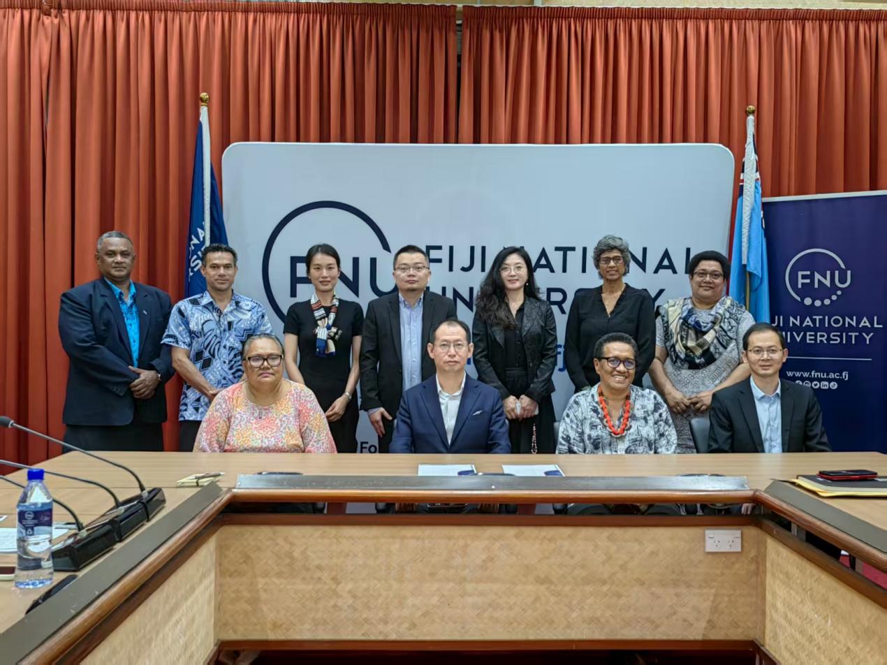 到訪斐濟國立大學期間,兩校代表就外語、法學、藝術設計等領域的合作、師生交流以及合作科研等方面進行了深入探討。申明浩表示兩校之間在經管法等學科建設方面高度契合,具有良好的合作基礎,特別是在太平洋島國研究、國際中文教育、留學生教育等方面可以進一步深化合作、拓展項目。