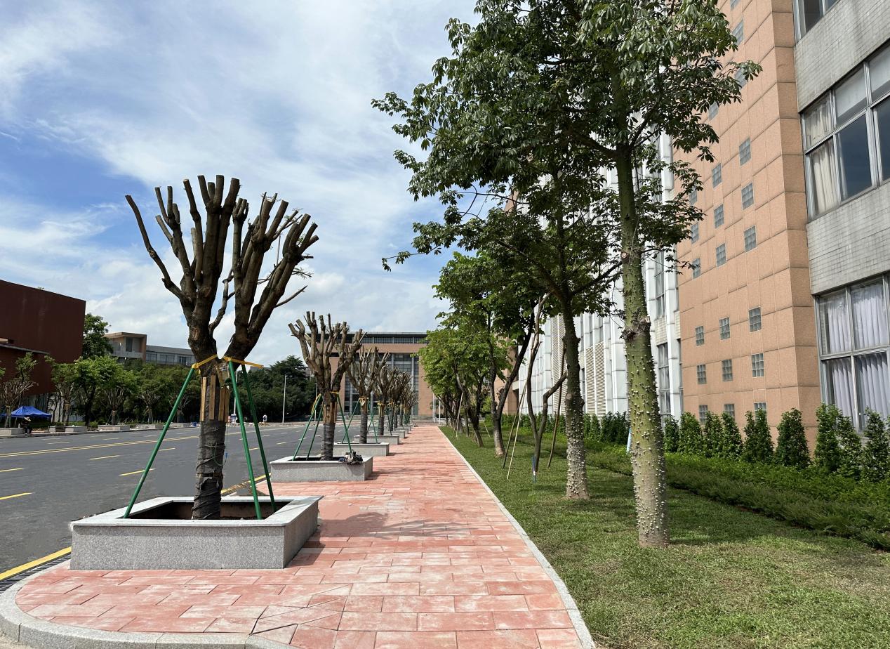 大學城校區入口形象全面升級:新建教學區校名石門、東南門與生活區2號門門崗,正門外墻翻新與周邊美化同步完成,不僅提升校園顏值,更方便師生出入管理;正門南廣場、校名石門路段調整綠化布局、重鋪校道瀝青,進一步美化校園核心區域景觀,其中正面南廣場兩側人行道重新鋪設地磚,新增樹池座椅,讓行走與休憩更舒適。