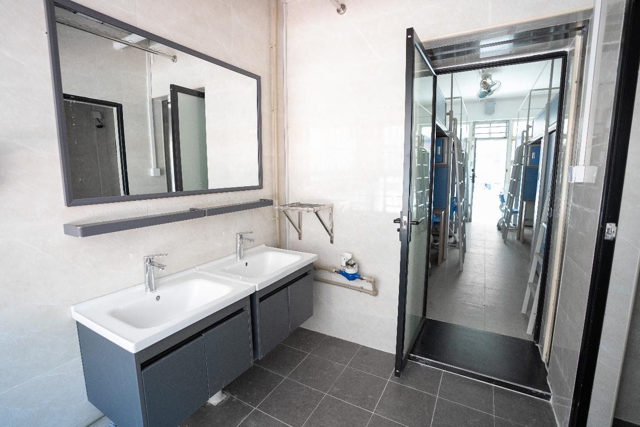 不僅如此,宿舍內外環境也迎來系統性的全面提升。白云山校區8-11棟新建獨立陽臺與衛生間,224間宿舍實現空間擴容,同學們擁有了更多私人儲物與休閑區域;15棟內外墻面粉刷一新,公共走廊鋪設平整防滑地磚,室內環境明亮整潔;云山公寓126間宿舍完成墻面粉刷、洗手間翻新與防盜網改造,居住安全與舒適度實現雙提升,細節處處體現用心。