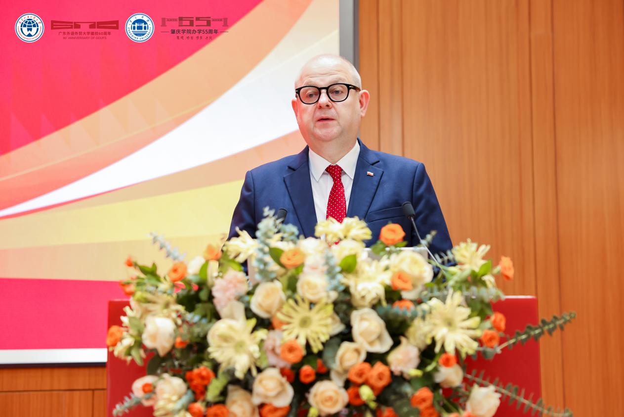 廣東外語外貿(mào)大學(xué)校長閆相斌教授、波蘭共和國駐廣州總領(lǐng)事彼得·諾沃特尼亞克先生和中共廣東省委外事工作委員會辦公室(廣東省人民政府外事辦公室)李宏志副主任分別為大會致開幕辭。廣東外語外貿(mào)大學(xué)區(qū)域國別學(xué)院(國際關(guān)系研究院)院長茅銀輝教授主持開幕式。