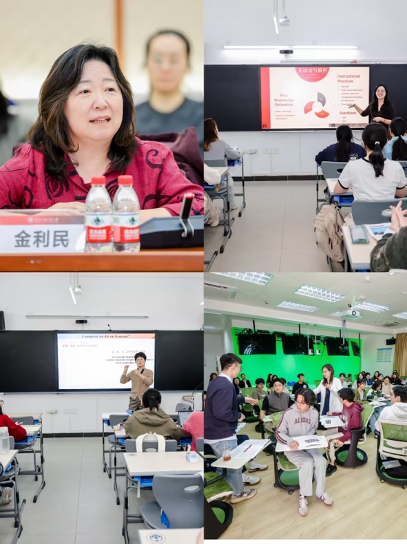 下午,廣東外語外貿大學李敏子副教授、呂繼群副教授和張志智副教授分別開展了《理解當代中國:英語讀寫教程》《理解當代中國:漢法翻譯教程》和《理解當代中國:西班牙語演講教程》公開課。課后由北京外國語大學金利民教授組織與會教師進行教學研討。參會老師們表示,本次公開課環(huán)節(jié)精彩紛呈,3位教師對教材進行了創(chuàng)新性使用,依托虛擬課室、AI工具等展示了“數(shù)智賦能”與“學生中心”相融合的創(chuàng)新實踐,創(chuàng)造了以技術為輔、以學生為本的教學新范式。