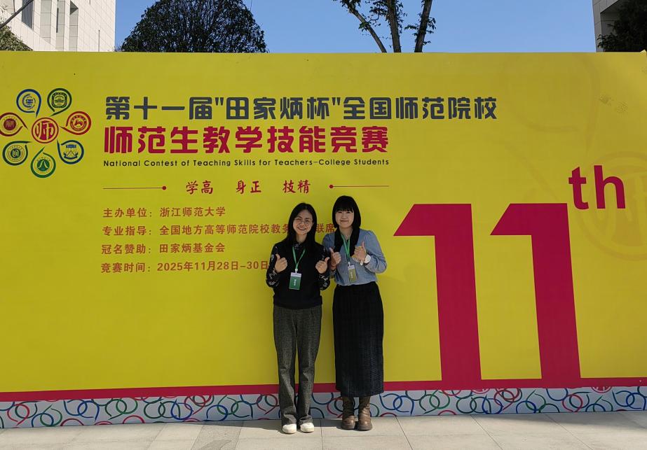 選手胡家儀(右)和指導老師呂琳瓊(左)在浙師大參賽現(xiàn)場合影